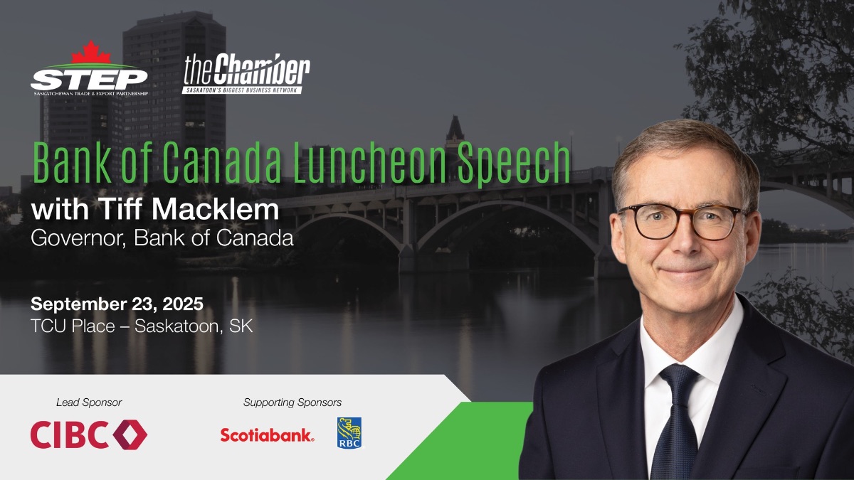Join us for a luncheon with Tiff Macklem, Governor of the Bank of Canada, hosted by Saskatchewan Trade and Export Partnership (STEP) and the Greater Saskatoon Chamber of Commerce. This highly anticipated event will deliver expert insights into: